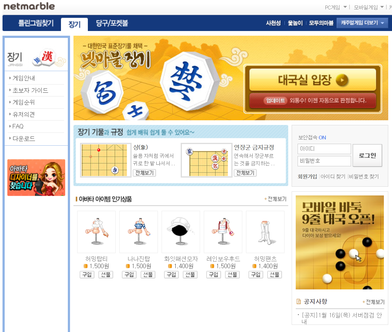 넷마블 장기 접속하기