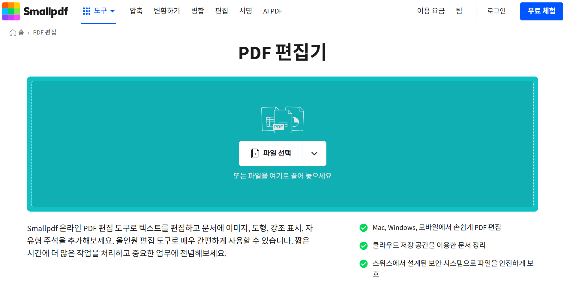 빠르게 글자를 조금 고치거나 형광펜을 넣는 정도라면 웹 기반 편집 도구가 도움이 됩니다. 사이트에 파일을 올리면 바로 편집 화면이 열리고, 그 자리에서 텍스트 추가나 간단한 표시 작업을 할 수 있습니다. 다만 문단 전체를 세밀하게 조정하거나 글자 스타일을 자유롭게 바꾸는 작업은 제한될 때가 많습니다. 예를 들면 Smallpdf 같은 사이트( https://smallpdf.com/kr/edit-pdf )는 바로 편집이 가능해 급한 상황에서 유용합니다. 예전에는 편집기능이 없었는데 조금씩 좋아지고 있습니다.