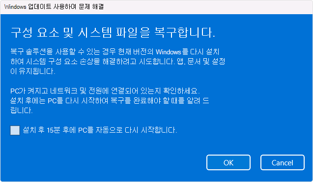가장 간단한 방법은 윈도우가 기본적으로 제공하는 초기화 기능을 이용하는 것입니다. 시작 메뉴에서 설정을 열고, 그중에서 업데이트 및 보안 항목으로 들어가면 복구 메뉴를 찾을 수 있습니다. 여기에서 이 PC 초기화 기능을 실행할 수 있는데, 윈도우가 스스로 필요한 파일을 준비하며 새 상태로 돌아가는 방식입니다.
