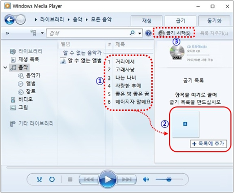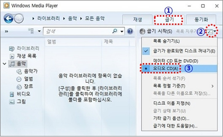 2. 오디오 CD 굽기 (Windows Media Player 사용)